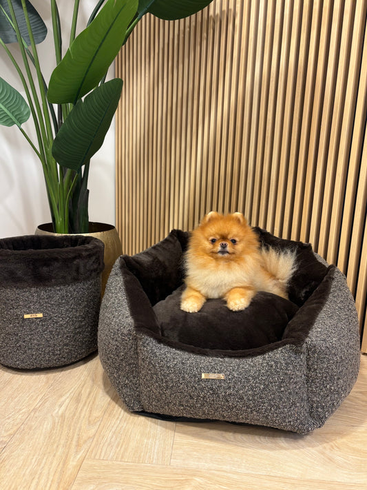 Set Shell mand Bouclé & speelgoed box - Bruin Fur