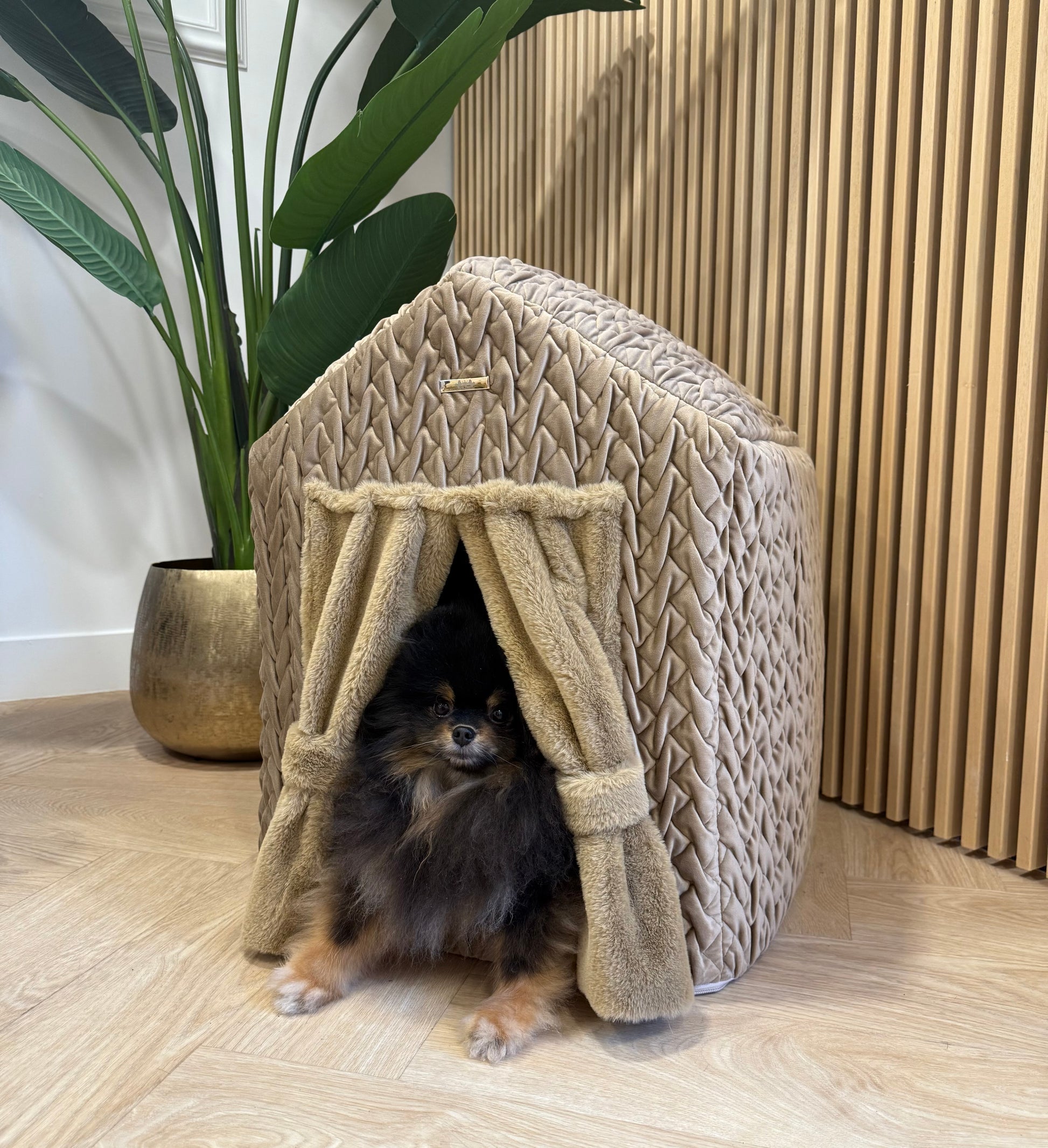 Luxe huisje met gordijnen - Athena donkerbeige